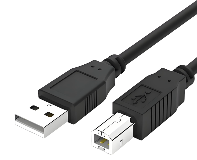 通常打印机随箱会附带一根USB线,一端为方形接口(USB-B),另一端为长方形接口(USB-A)。