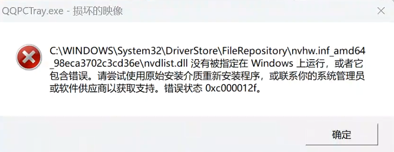 删除C:\WINDOWS\System32\DriverStore\FileRepository\nvhw.inf_amd64_98eca3702c3cd36e\nvdlist.dll(报错*图二)