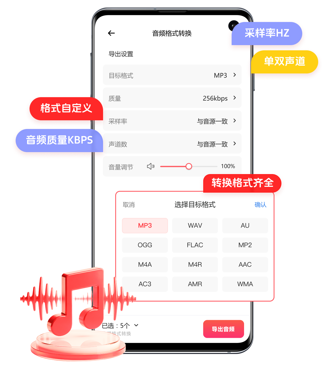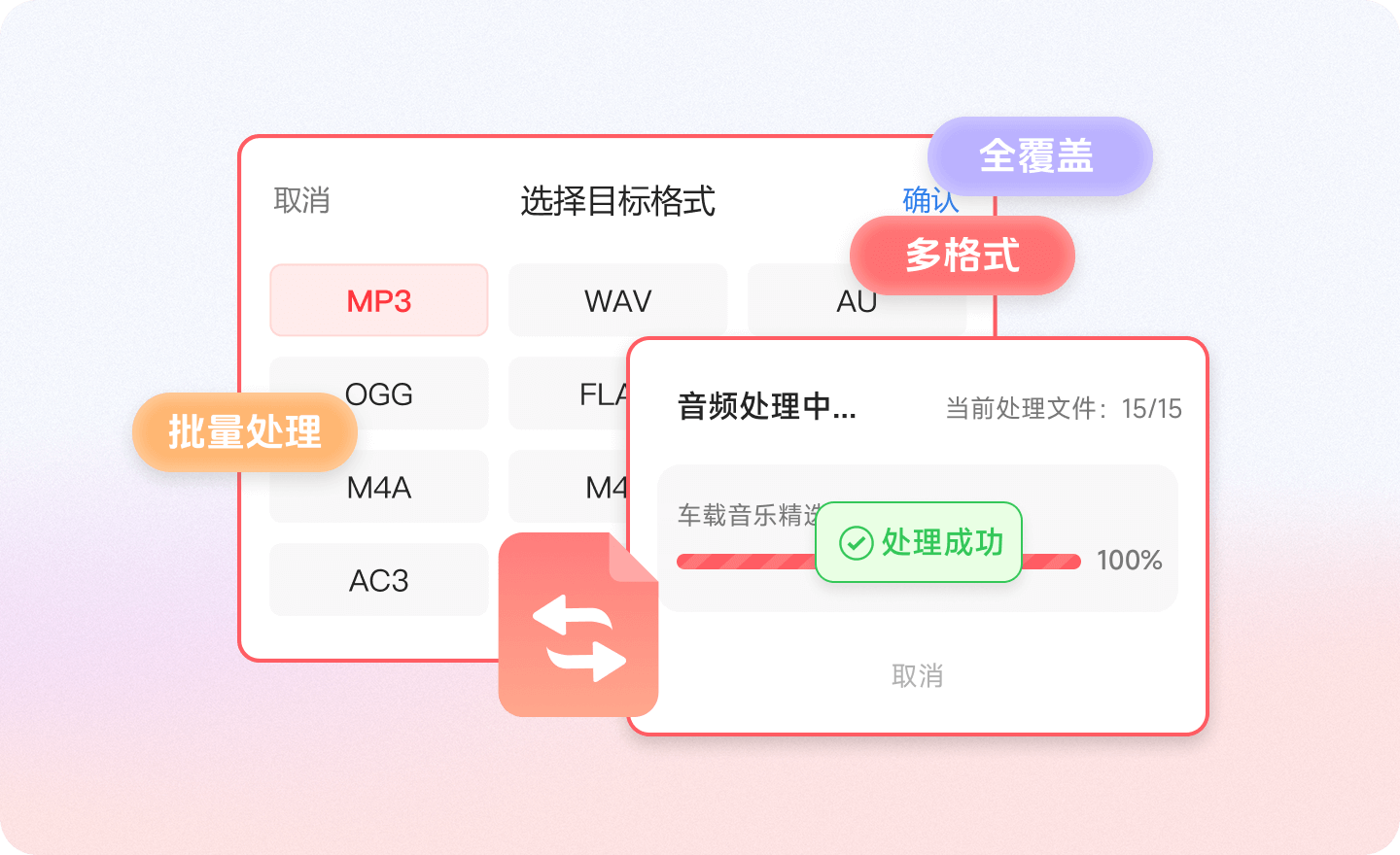 持MP3、WAV、FLAC、AAC、OGG、M4A等40+种音频格式全面互转