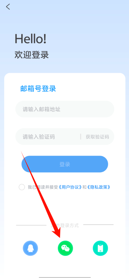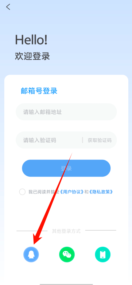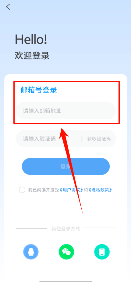 选择邮箱登录后,在以下页面中输入邮箱号,然后点击“获取验证码”,随后将获取的验证码输入,勾选“我已同意并接受《用户协议》和《隐私政策》”,再点击“登录”即可登录成功。