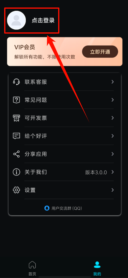 手机上打开APP后,在「我的」页面点击左上角的“点击登录”即可注册软件会员。